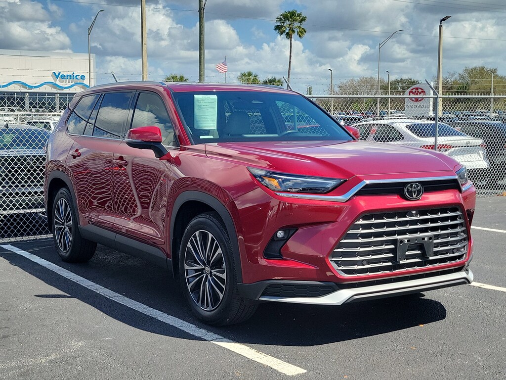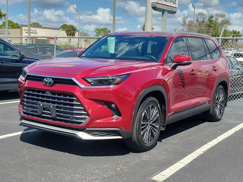 2024 Toyota Grand Highlander Hybrid 2.4L 4-Cylinder VVT-i Ruby Flare Pearl 2.4L 4-Cylinder VVT-i. This vehicle also comes equipped with: Toyota Certified Used Hybrids Certified, 2.4L 4-Cylinder VVT-i, 11 Speakers, 20 Aluminum Alloy Wheels, 3rd row seats: split-bench, 4-Wheel Disc Brakes, ABS brakes, Air Conditioning, Alloy wheels, AM/FM radio: SiriusXM, Apple CarPlay/Android Auto, Auto High-beam Headlights, Auto-dimming Rear-View mirror, Automatic temperature control, Brake assist, Bumpers: body-color, Delay-off headlights, Driver door bin, Driver vanity mirror, Dual front impact airbags, Dual front side impact airbags, Electronic Stability Control, Emergency communication system: Safety Connect (up to 10-year trial subscription), Exterior Parking Camera Rear, Four wheel independent suspension, Front anti-roll bar, Front Bucket Seats, Front Center Armrest, Front dual zone A/C, Front fog lights, Front reading lights, Fully automatic headlights, Garage door transmitter: HomeLink, Heads-Up Display, Heated & Ventilated Front Seats w/Memory, Heated door mirrors, Heated front seats, Heated rear seats, Heated steering wheel, Illuminated entry, Knee airbag, Leather Shift Knob, Leather steering wheel, Low tire pressure warning, Memory seat, Navigation system: Drive Connect Cloud Navigation (1-year trial subscription), Occupant sensing airbag, Outside temperature display, Overhead airbag, Overhead console, Panic alarm, Passenger door bin, Passenger vanity mirror, Power door mirrors, Power driver seat, Power Liftgate, Power moonroof, Power passenger seat, Power steering, Power windows, Radio: 12.3 Toyota Audio Multimedia w/JBL Premium, Rain sensing wipers, Rear air conditioning, Rear anti-roll bar, Rear reading lights, Rear window defroster, Rear window wiper, Reclining 3rd row seat, Remote keyless entry, Security system, Speed control, Speed-sensing steering, Split folding rear seat, Spoiler, Steering wheel mounted audio controls, TBD Axle Ratio, Telescoping steering wheel, Tilt steering wheel, Traction control, Trip computer, Turn signal indicator mirrors, Ultrasuede/Leather Seat Trim, Variably intermittent wipers, Ventilated front seats, and Ventilated rear seats. AWD 6-Speed Automatic Recent Arrival! Odometer is 30249 miles below market average! 26/27 City/Highway MPG