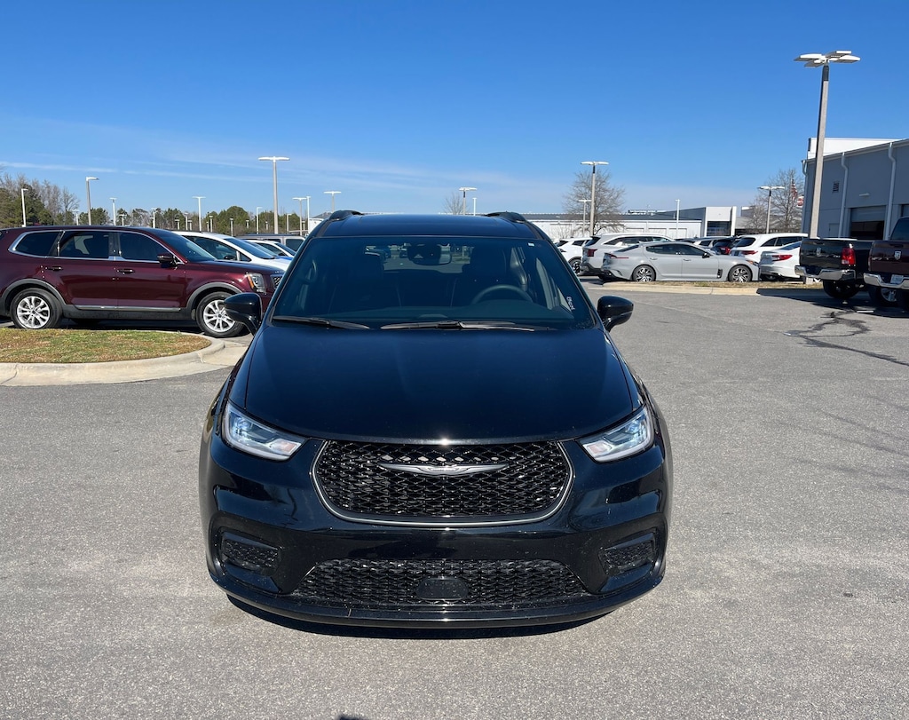 This vehicle comes equipped with : Quick Order Package 27P, 13 Speakers, 3.25 Axle Ratio, 3rd row seats: split-bench, 4-Wheel Disc Brakes, ABS brakes, Air Conditioning, Alloy wheels, AM/FM radio: SiriusXM 360L, Apple CarPlay/Android Auto, Audio memory, Auto-dimming Rear-View mirror, Automatic temperature control, Black Seats, Brake assist, Bumpers: body-color, Compass, Delay-off headlights, Driver door bin, Driver vanity mirror, Driver's Seat Mounted Armrest, Dual front impact airbags, Dual front side impact airbags, Electronic Stability Control, Emergency communication system: Chrysler Connect, Four wheel independent suspension, Front anti-roll bar, Front Bucket Seats, Front dual zone A/C, Front fog lights, Front reading lights, Fully automatic headlights, Garage door transmitter, Heated door mirrors, Heated front seats, Heated rear seats, Heated steering wheel, Illuminated entry, Integrated Active Noise Cancellation, Knee airbag, Low tire pressure warning, Manufacturer's Statement of Origin, Memory seat, Nappa Leather Bucket Seats with S Logo, Navigation System, Occupant sensing airbag, Outside temperature display, Overhead airbag, Overhead console, Panic alarm, ParkView Rear Back-Up Camera, Passenger door bin, Passenger seat mounted armrest, Passenger vanity mirror, Power door mirrors, Power driver seat, Power Liftgate, Power moonroof, Power passenger seat, Power steering, Power windows, Radio data system, Radio: Uconnect 5 Nav with 10.1" Display, Rain sensing wipers, Rear air conditioning, Rear reading lights, Rear window defroster, Rear window wiper, Reclining 3rd row seat, Remote keyless entry, Roof rack, Security system, Speed control, Split folding rear seat, Spoiler, Steering wheel mounted audio controls, Tachometer, Telescoping steering wheel, Tilt steering wheel, Touring Suspension, Traction control, Trip computer, Turn signal indicator mirrors, Variably intermittent wipers, Ventilated front seats, Voltmeter, and Wheels: 20" x 7.5" S-Model Aluminum Design 1.