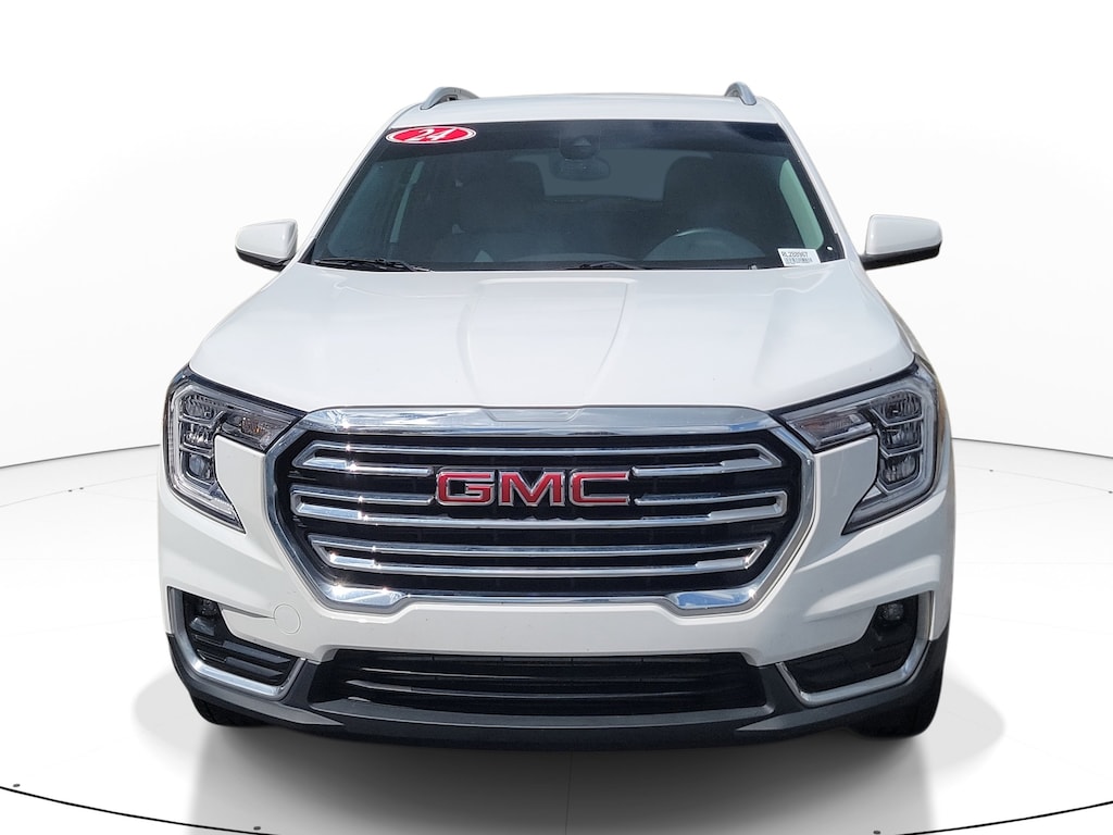 2024 GMC Terrain 1.5L DOHC Summit White AWD. This vehicle also comes equipped with: GMC Pro Safety Plus (Adaptive Cruise Control, Lane Change Alert w/Side Blind Zone Alert, Rear Cross-Traffic Alert, Rear Park Assist, and Safety Alert Seat), Preferred Equipment Group 4SA, AWD, 2 USB Data Ports, 2 USB Data Ports w/SD Card Reader, 3.47 Final Drive Axle Ratio, 4-Wheel Disc Brakes, 6 Speakers, 6-Speaker Audio System Feature, 6-Way Power Front Passenger Seat, 8-Way Power Driver Seat Adjuster, ABS brakes, Air Conditioning, Alloy wheels, AM/FM radio: SiriusXM, Auto High-beam Headlights, Auto-dimming Rear-View mirror, Automatic temperature control, Bluetooth® For Phone, Brake assist, Bumpers: body-color, Compass, Delay-off headlights, Driver & Front Passenger Heated Seats, Driver door bin, Driver vanity mirror, Dual front impact airbags, Dual front side impact airbags, Electronic Stability Control, Emergency communication system: OnStar and GMC connected services capable, Four wheel independent suspension, Front anti-roll bar, Front Bucket Seats, Front Center Armrest, Front dual zone A/C, Front fog lights, Front Passenger 2-Way Power Lumbar, Front reading lights, Fully automatic headlights, Garage door transmitter, Heated door mirrors, Heated front seats, Heated steering wheel, Illuminated entry, Low tire pressure warning, Memory seat, Occupant sensing airbag, Outside temperature display, Overhead airbag, Overhead console, Panic alarm, Passenger door bin, Passenger vanity mirror, Perforated Leather-Appointed Seat Trim, Power door mirrors, Power Driver Lumbar Control, Power driver seat, Power Liftgate, Power passenger seat, Power steering, Power windows, Radio data system, Radio: GMC Infotainment Audio System w/8 Display, Rear anti-roll bar, Rear seat center armrest, Rear window defroster, Rear window wiper, Remote keyless entry, Roof rack: rails only, Security system, SiriusXM, Speed control, Speed-sensing steering, Split folding rear seat, Spoiler, Steering wheel mounted audio controls, Tachometer, Telescoping steering wheel, Tilt steering wheel, Traction control, Trip computer, Turn signal indicator mirrors, Variably intermittent wipers, Wheels: 18 x 7 Silver Painted Aluminum, and Wireless Apple CarPlay/Wireless Android Auto. AWD 9-Speed Automatic Recent Arrival! Priced below KBB Fair Purchase Price! Odometer is 20009 miles below market average! 23/28 City/Highway MPG