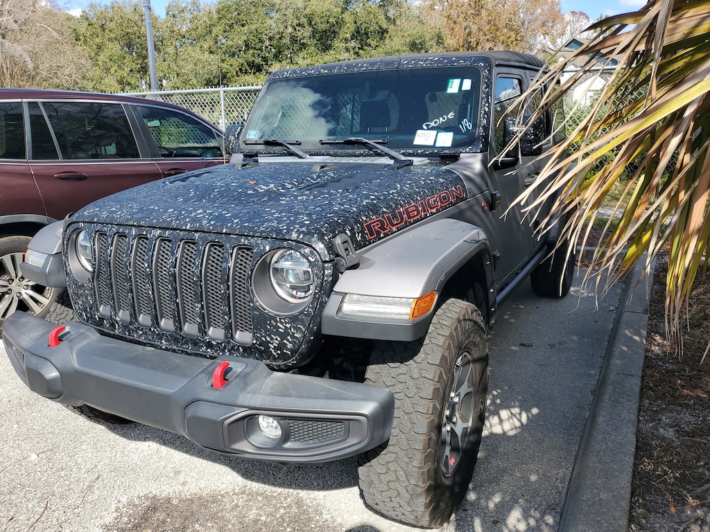 This Vehicle comes equipped with: Cold Weather Group (Heated Front Seats and Heated Steering Wheel), LED Lighting Group (Daytime Running Lamps LED Accents, Front LED Fog Lamps, LED Premium Reflector Headlamps, and LED Taillamps), Quick Order Package 22R, 4-Wheel Disc Brakes, 4.10 Rear Axle Ratio, 9 Speakers, ABS brakes, Air Conditioning, Alloy wheels, AM/FM radio: SiriusXM, Apple CarPlay/Android Auto, Auto-dimming Rear-View mirror, Automatic temperature control, Aux Battery, Body Color Rubicon Highline Flare, Brake assist, Compass, Delay-off headlights, Driver door bin, Driver vanity mirror, Dual front impact airbags, Dual front side impact airbags, Electronic Stability Control, Emergency communication system: SiriusXM Guardian, Engine Oil Cooler, Front anti-roll bar, Front Bucket Seats, Front Center Armrest w/Storage, Front dual zone A/C, Front fog lights, Front reading lights, Fully automatic headlights, Garage door transmitter, Heated door mirrors, Illuminated entry, Integrated roll-over protection, Jeep Trail Rated Kit, Leather steering wheel, Low tire pressure warning, MOPAR All-Weather Floor Mats, Navigation System, Non-Lock Fuel Cap w/o Discriminator, Occupant sensing airbag, Outside temperature display, Panic alarm, ParkView Rear Back-Up Camera, Passenger door bin, Passenger vanity mirror, Performance Suspension, Power door mirrors, Power steering, Power windows, Premium Cloth Low-Back Bucket Seats, Radio data system, Radio: Uconnect 4C Nav w/8.4" Display, Rear anti-roll bar, Rear reading lights, Remote keyless entry, Remote Start System, Security system, Speed control, Split folding rear seat, Steering wheel mounted audio controls, Stop-Start Dual Battery System, Tachometer, Telescoping steering wheel, Tilt steering wheel, Traction control, Trip computer, Variably intermittent wipers, Voltmeter, and Wheels: 17" x 7.5" Machined w/Black Pockets.