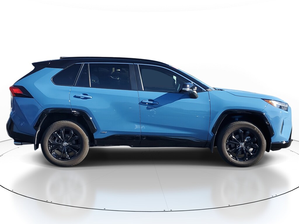 2024 Toyota RAV4 Hybrid 2.5L 4-Cylinder Cavalry Blue/Midnight Black Metallic 2.5L 4-Cylinder, 12.3 Multi Information Display, Advanced Technology Package, Blind Spot Monitor, Driver Seat w/2-Position Memory Function, Front & Rear Parking Assist w/Automated Braking, Heated 3-Spoke Leather Steering Wheel, Intelligent Clearance Sonar (ICS), Panoramic View Monitor, Qi-Compatible Wireless Smartphone Charging, Smart Key System w/Push Button Start, Weather Package. This vehicle also comes equipped with: Advanced Technology Package (12.3 Multi Information Display, Blind Spot Monitor, Driver Seat w/2-Position Memory Function, Front & Rear Parking Assist w/Automated Braking, Intelligent Clearance Sonar (ICS), Panoramic View Monitor, Qi-Compatible Wireless Smartphone Charging, and Smart Key System w/Push Button Start), Weather Package (Heated 3-Spoke Leather Steering Wheel), 2.5L 4-Cylinder, 4-Wheel Disc Brakes, 6 Speakers, ABS brakes, Air Conditioning, Alloy wheels, AM/FM radio: SiriusXM, Auto High-beam Headlights, Auto-dimming Rear-View mirror, Automatic temperature control, Axle Ratio: TBD, Brake assist, Bumpers: body-color, Delay-off headlights, Driver door bin, Driver vanity mirror, Dual front impact airbags, Dual front side impact airbags, Electronic Stability Control, Emergency communication system: Safety Connect (1-year trial), Exterior Parking Camera Rear, Four wheel independent suspension, Front anti-roll bar, Front Bucket Seats, Front Center Armrest, Front dual zone A/C, Front reading lights, Fully automatic headlights, Garage door transmitter: HomeLink, Heated door mirrors, Heated Front Seats, Heated front seats, Illuminated entry, Knee airbag, Leather Shift Knob, Leather steering wheel, Low tire pressure warning, Mixed Media Seat Trim, Occupant sensing airbag, Outside temperature display, Overhead airbag, Overhead console, Panic alarm, Passenger door bin, Passenger vanity mirror, Power door mirrors, Power driver seat, Power Liftgate, Power moonroof, Power steering, Power windows, Radio data system, Radio: AM/FM/XM Audio System, Rear anti-roll bar, Rear seat center armrest, Rear window defroster, Rear window wiper, Remote keyless entry, Security system, Speed control, Speed-sensing steering, Split folding rear seat, Spoiler, Steering wheel mounted audio controls, Telescoping steering wheel, Tilt steering wheel, Traction control, Trip computer, Turn signal indicator mirrors, Variably intermittent wipers, and Wheels: 18 x 7.0J Black-Painted Aluminum Alloy. AWD eCVT Recent Arrival! Priced below KBB Fair Purchase Price! Odometer is 21935 miles below market average! 41/38 City/Highway MPG