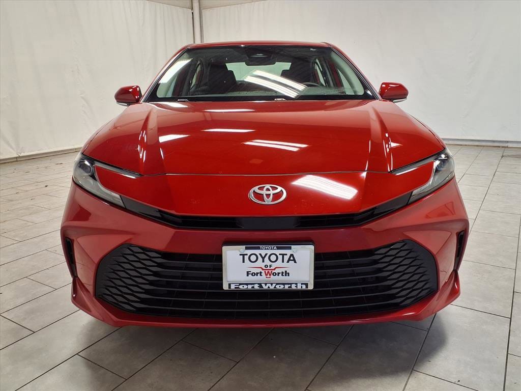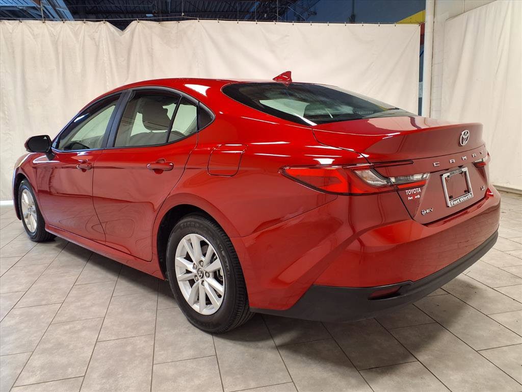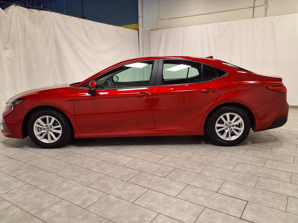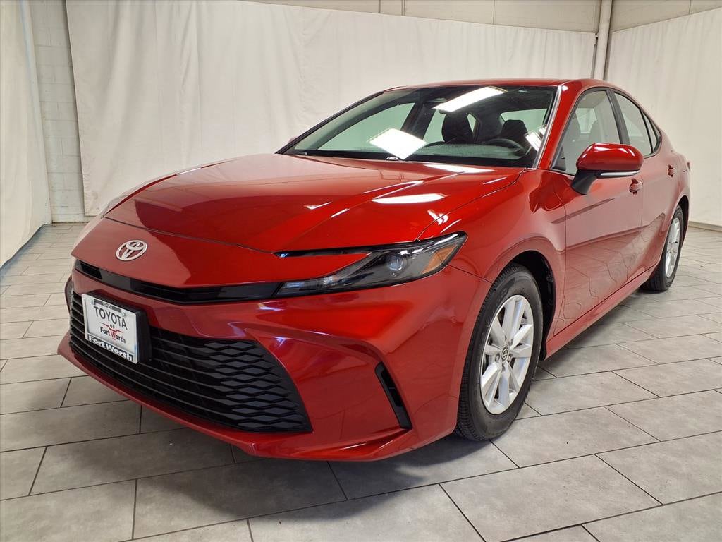 Supersonic Red 2025 Toyota Camry LE FWD eCVT 2.5L 4-Cylinder 16V DOHC 2.5L 4-Cylinder 16V DOHC, Black Cloth.